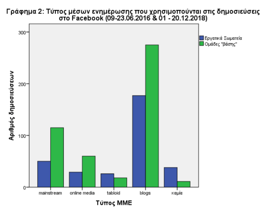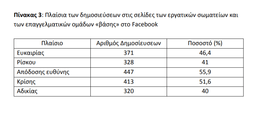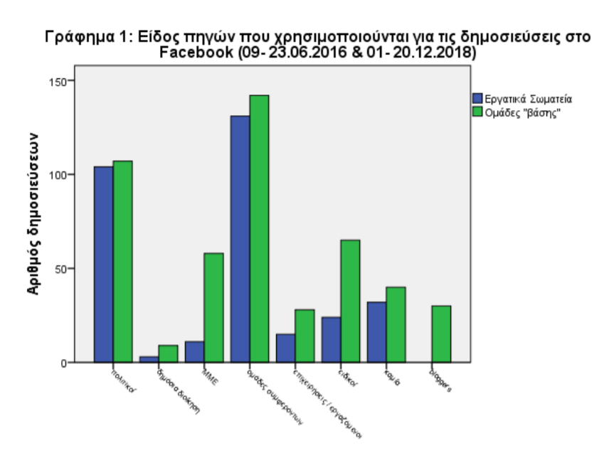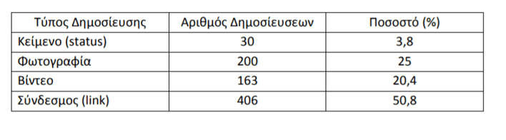 Πίνακας 2: Τύπος δημοσιεύσεων στις σελίδες των εργατικών σωματείων και των επαγγελμαυτικών ομάδων «βάσης» στο Facebook σχετικά με την παραμονή της Βρετανίας στην ΕΕ