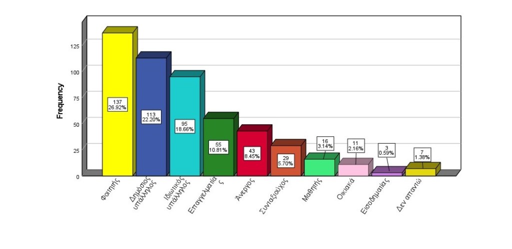 α. Οι 137 είναι φοιτητές και αποτελούν το 26.92% του συνολικού δείγματος.
