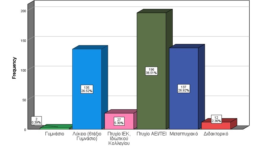 δ. 196 ή το 38.51% έχουν πτυχίο ΑΕΙ/ΤΕΙ.