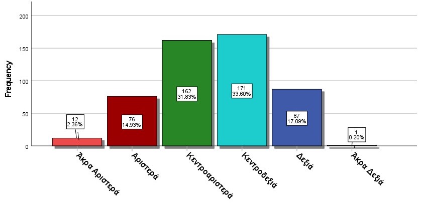 Διάγραμμα 5: Πολιτική τοποθέτηση συμμετεχόντων σύμφωνα με προσωπική τους εκτίμηση