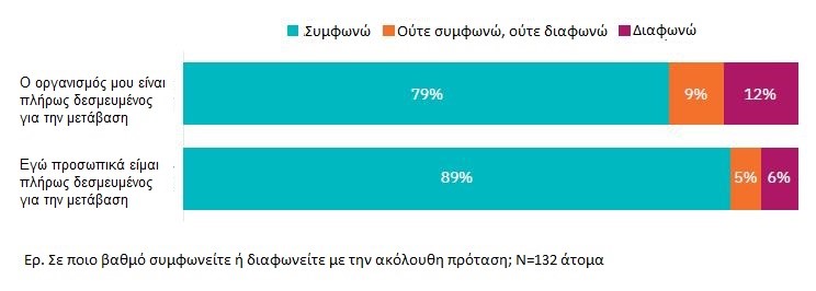 Γράφημα 1: Ποσοστό δέσμευσης για την μετάβαση σε υβριδική και εξ αποστάσεως εργασία