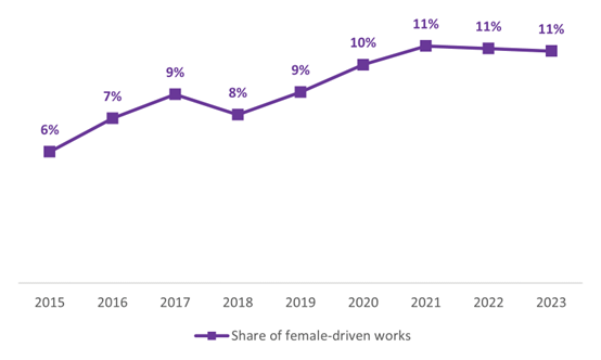Η έρευνα καταλήγει στο συμπέρασμα ότι το ποσοστό των γυναικών στην ευρωπαϊκή κινηματογραφική παραγωγή αυξήθηκε μόνο κατά 5% το 2023 σε σχέση με το 2015 (από 19% το 2015 σε 24% το 2023). Ωστόσο, σύμφωνα με την μελέτη καταγράφεται: