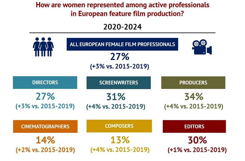 Το Ευρωπαϊκό Παρατηρητήριο Οπτικοακουστικών Μέσων, που υπάγεται στο Συμβούλιο της Ευρώπης στο Στρασβούργο, μόλις δημοσίευσε μια νέα έκδοση της έκθεσης «Γυναίκες επαγγελματίες στην ευρωπαϊκή κινηματογραφική παραγωγή: στοιχεία για την περίοδο 2015-2024». Η έκθεση αναλύει την ανισότητα των φύλων σε έξι κατηγορίες προσωπικού πίσω από την κάμερα: σκηνοθέτες, σεναριογράφοι, παραγωγοί, κινηματογραφιστές, συνθέτες και μοντέρ.