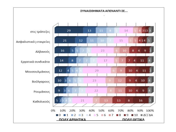Διάγραμμα 11: Συναισθήματα τις κοινής γνώμης για τα κόμματα Σημείωση: Σε μια κλίμακα από το 0 έως το 10, όπου το 10 σημαίνει πολύ θετικά συναισθήματα και 0 σημαίνει πολύ αρνητικά συναισθήματα, που θα τοποθετούσατε τα συναισθήματα που έχετε απέναντι στα κόμματα…